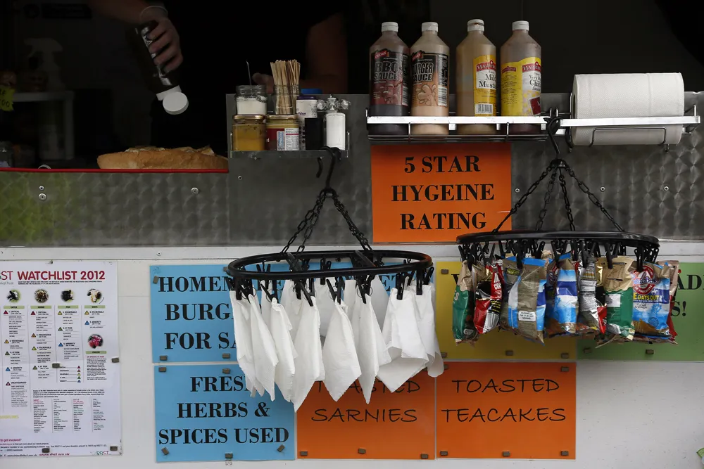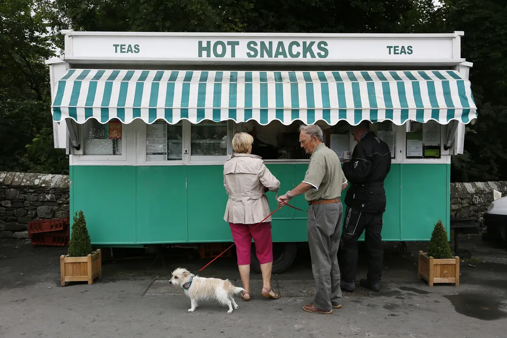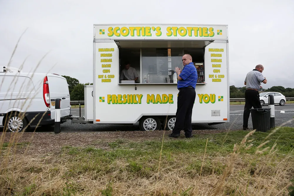 但是,从移动车辆中提供的食物远非新鲜事物,在英国的公路上,21世纪城市食品车的谦卑祖先仍然可以找到。拖车、小货车,甚至双层巴士的外壳为路过的司机提供简单的餐点,让卡车司机和旅行者享用他们的英式早餐、汉堡和茶点。没有 用甜菜根和山羊奶酪制作的粘土烤平面饼可见。