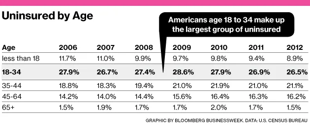 年轻的无敌者,保险行业称像宾科这样的人,正处于《平价医疗法案》支持者和反对者之间的激烈斗争中心。根据位于纽约的康威尔基金会的估计,约有1570万19至29岁的美国人没有保险。白宫表示,需要270万年轻人在10月1日开放的政府运营市场中购买保险。如果没有这一群体,面临更高健康问题的老年人的保费将会上涨,医疗改革可能会受到影响。
