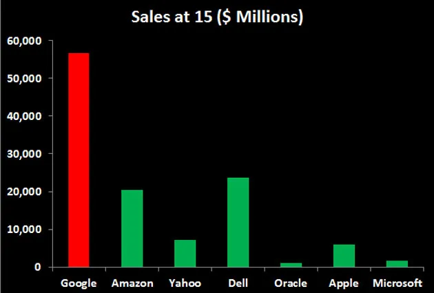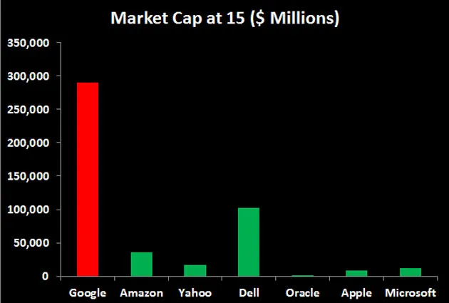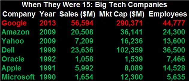 对于各个年龄段的公司来说,谷歌非常庞大——但与其他大型科技公司在15岁时相比如何呢?