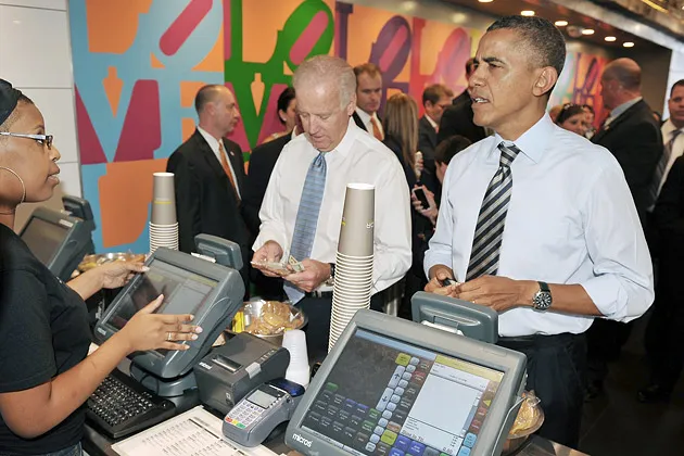 奥巴马总统和拜登副总统于10月4日在华盛顿的Taylor Gourmet Deli点午餐照片由Mandel Ngan/法新社通过Getty Images提供通过取消下周计划前往亚洲的行程,奥巴马总统可能认为他已经避开了一个潜在的政治雷区。共和党人无疑会在看到总统在政府停摆期间离开城市时大声抗议。尽管如此,他们中的一些人还是在抗议。“白宫的计划工作人员早该(或应该)几个月前就看到这一截止日期的冲突,” 保守派专栏作家丹尼尔·亨宁在 华尔街日报中写道。“外交关系受到影响,以便奥巴马可以攻击共和党。”