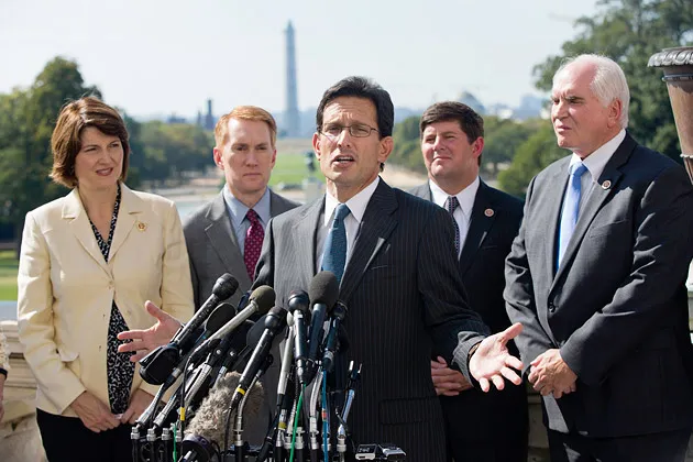 众议院多数党领袖埃里克·坎特(R-Va.)在周三的新闻发布会上做出夸张的手势照片由埃文·沃基/AP 图片提供直到周一午夜钟声敲响前几分钟,众议院共和党人似乎可能会失去勇气,通过一项干净的持续决议以避免关门。来自纽约的温和共和党代表皮特·金和加利福尼亚的德文·努内斯等人的压力,以及一些不那么温和的共和党人因害怕公开发声而保持沉默,还有那些意识到党内没有胜利战略的共和党评论员,都是如此。最终,众议院议长约翰·博纳(R-Ohio)和他的党团选择了继续前进并跳了下去。到目前为止,他们还活着。