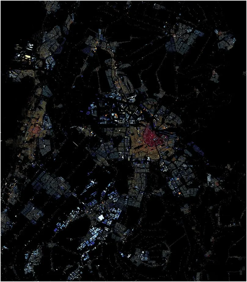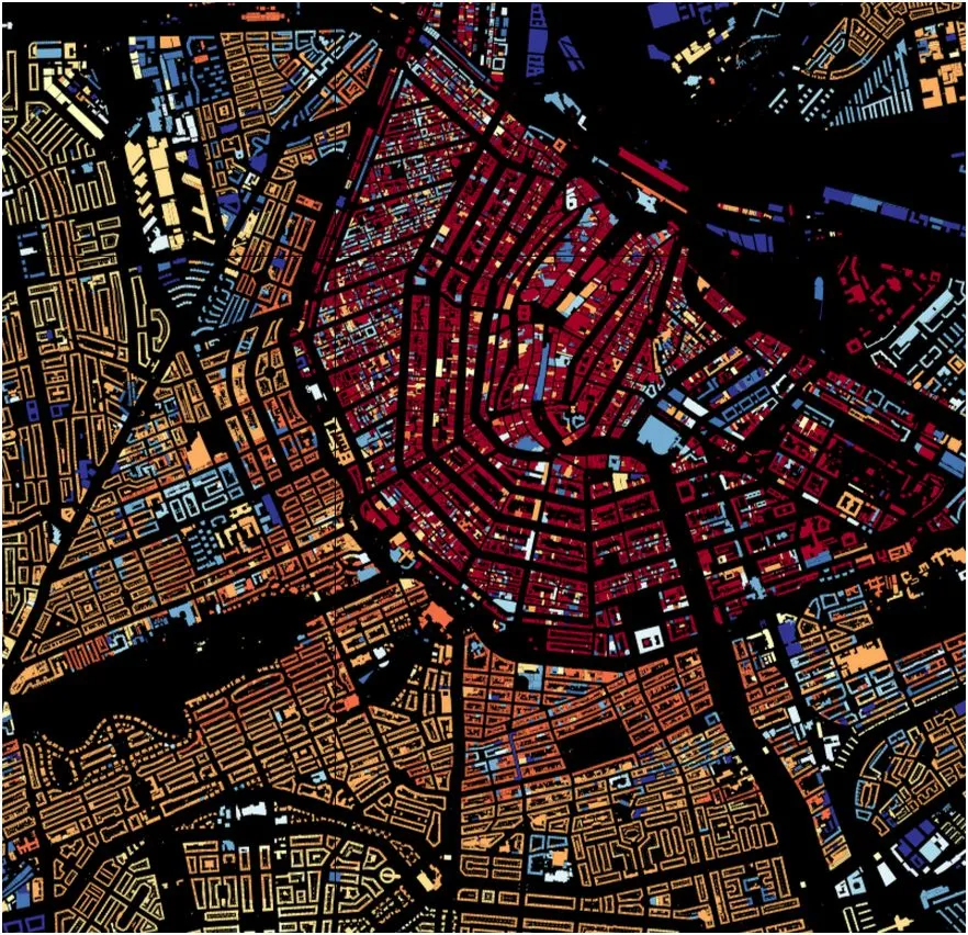 您在上面看到的不是哈勃望远镜的取景器。这是一张地图的部分,显示了 荷兰的每一栋建筑,总共 9,866,539 栋,每栋建筑根据建造年代进行颜色编码。历史爱好者们,请收起你们的下巴,开始探索这个极其详细的可视化,它提供了每个结构的详细信息,只需点击鼠标按钮。