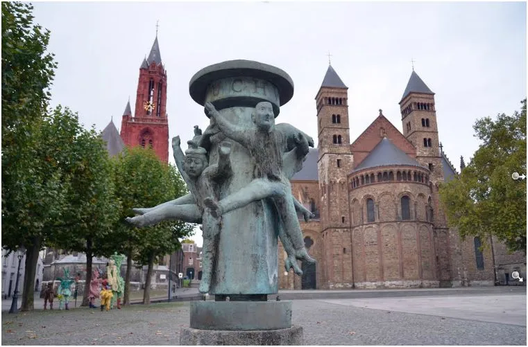 这是马斯特里赫特的吱吱作响的城市,拥有全国最古老的教堂(它是中央蓝色广场左侧的白垩红结构):
