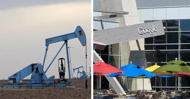 顶部图片:德克萨斯州米德兰的一个油田(路透社/杰西卡·里纳尔迪)和加利福尼亚州山景城的谷歌校园(Flickr用户罗曼·博德)。