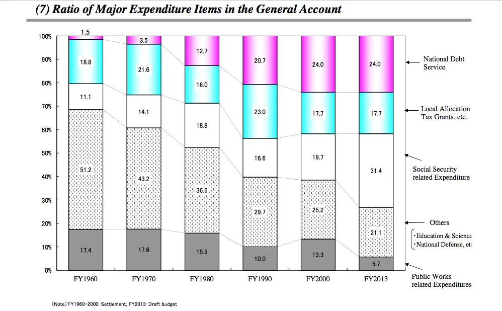 下图显示了日本政府预算在融资当前债务和支出社会项目方面面临的巨大压力,考虑到该国老龄化的人口。