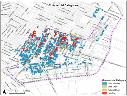 尽管人口结构发生了剧烈变化,但一些事情仍然表明强烈的社区特征:以住宅和混合商业建筑为主;餐馆和面包店;多样化小企业的主导地位。在纽约的华埠,大多数小企业仍然致力于为当地居民和工人提供日常商品和服务(餐馆、杂货店和其他便利店)。