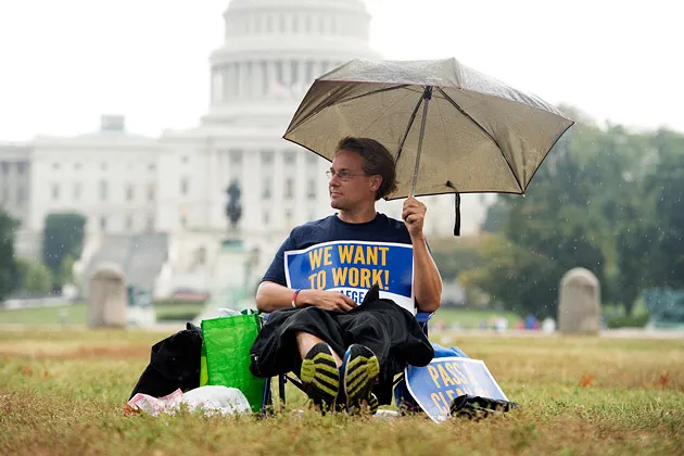 杰弗里·威斯默,一名被休假的美国志愿者公司员工,10月7日坐在华盛顿的国家广场上照片由汤姆·威廉姆斯/CQ Roll Call通过Getty Images提供当你拨打弗吉尼亚就业委员会的主要热线时——如果你 能接通——你会听到的第一件事是一个问题,询问你是否是想要申请的联邦员工。信息建议来电者查看该机构的 网站,该网站已将休假员工的信息放在显眼位置。闲置的政府员工最好滚动到问答的底部,那里有一个关于福利的大警告:结果发现这更像是一笔无息贷款。