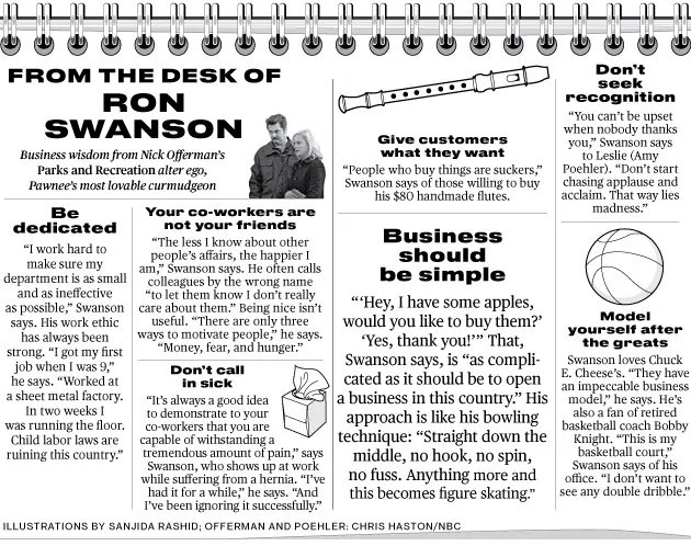 当他不在制作家具或写书时,奥夫曼每年有七个月的时间在拍摄 公园与游憩。他扮演老板,但他从未在镜头外寻求过高管角色。“我宁愿在一个杰出的将军手下服务,也不愿自己制定任何战斗计划。”