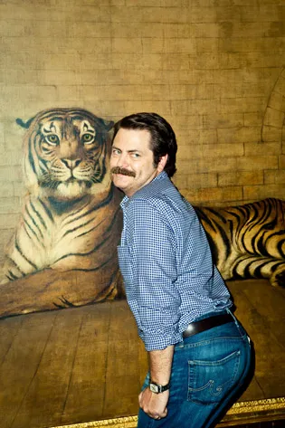 Offerman与他在电视上扮演的角色Ron Swanson之间的重叠并不小。今天,Offerman留着他作为Pawnee公园和娱乐部主管而闻名的同样的胡子。但他的头发没有那么官僚式的蓬松,他穿着一件蓝白格子衬衫和一条磨损的牛仔裤,而不是Swanson的中西部卡其裤。还有哲学上的差异:Swanson是一个自由意志主义者的Lou Grant,厌恶他所工作的政府,而Offerman则遵循更具力量的人文主义。他们两人都真心珍视一种现代社会所忽视的男子气概。
