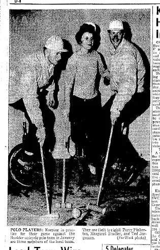 特德·约根森,右侧,出现在1961年11月23日的《阿尔伯克基论坛报》上出于一时兴起,我使用了一个名为NewspaperArchive.com的网站,搜索阿尔伯克基报纸的记录,寻找关于约根森家族在1960年代的任何线索。然后我做出了一个惊人的发现:那时的出版物充满了一个名叫特德·约根森的年轻人的事迹。他是一个独轮车表演团体的杰出成员,该团体在马戏团和其他活动中以阿尔伯克基独轮车俱乐部和独轮车牛仔等名称出现。甚至有一篇文章提到约根森已婚并有一个孩子。
