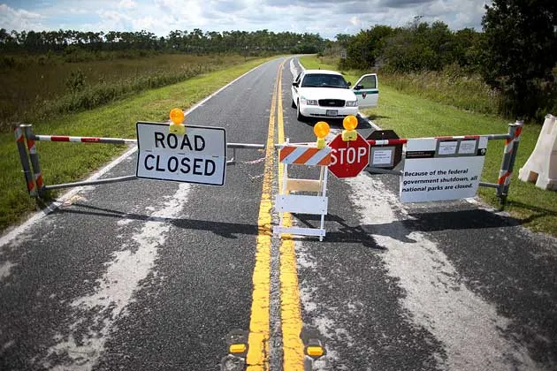通往大沼泽国家公园的道路在10月7日于迈阿密被封闭摄影:乔·雷德尔/美联社美国的“最佳创意”,正如小说家华莱士·斯特根所称的美国国家公园系统,已经关闭。 (甚至国家公园管理局的 网站 也因10月1日开始的联邦预算僵局而关闭。)