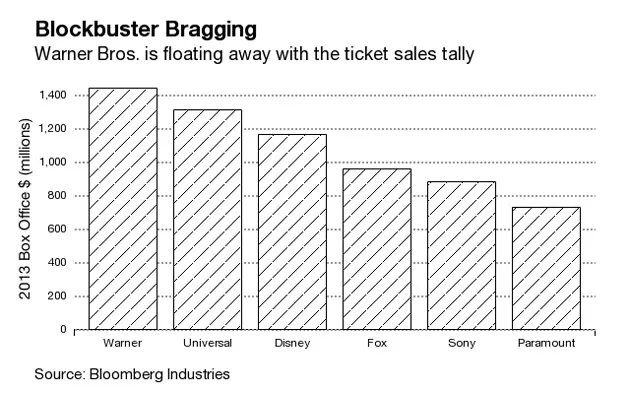在2013年的票房销售统计中,华纳兄弟在八月初超越了环球影业,并且没有回头。今年在美国和加拿大的票房销售额达到了14.4亿美元,而环球影业为13亿美元。