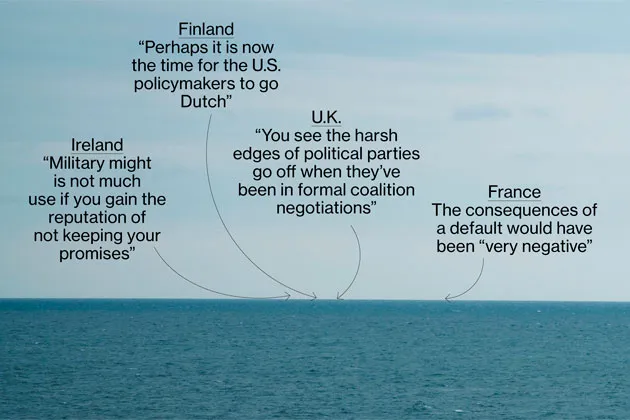 随着欧洲股市因华盛顿谈判中的每一次挫折而波动,欧洲政治家的声明开始接近恐慌。10月10日,国际货币基金组织的法国总裁克里斯蒂娜·拉加德在彭博电视上简洁地描述了可能违约的后果为“非常负面”,并呼吁“领导力”。前爱尔兰总理约翰·布鲁顿则不那么委婉。“毕竟,债券是一种承诺,”他在一封电子邮件中写道。“如果你获得了不守承诺的声誉,军事力量就没什么用。”前德国财政部长汉斯·艾希尔表示,他“对一个全球大国以这种方式行事感到无言以对,并且在这个系统中存在如此大的分歧和仇恨,以至于它可以无视该全球大国和世界其他地方的利益。”