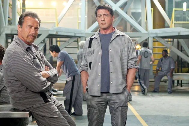 阿诺德·施瓦辛格,左,和西尔维斯特·史泰龙在逃生计划照片由艾伦·马克菲尔德/峰会娱乐通过埃弗雷特收藏提供这部新的动作电影逃生计划主演西尔维斯特·史泰龙饰演一名安全专家,他发现自己被关押在一个高科技、未来派的监狱中。为了逃脱,他与另一名年迈的囚犯联手,由阿诺德·施瓦辛格饰演。即使是最大的死忠粉丝兰博和掠夺者,这个形象也是象征性的:1980年代和1990年代最强壮的肌肉偶像联手对抗他们无法用拳头摧毁的不断发展的技术。