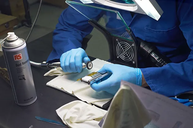 一名技术人员使用放大镜来抛光一部Vertu手机摄影:Micha Theiner/Redux嘲笑Vertu是很容易的。