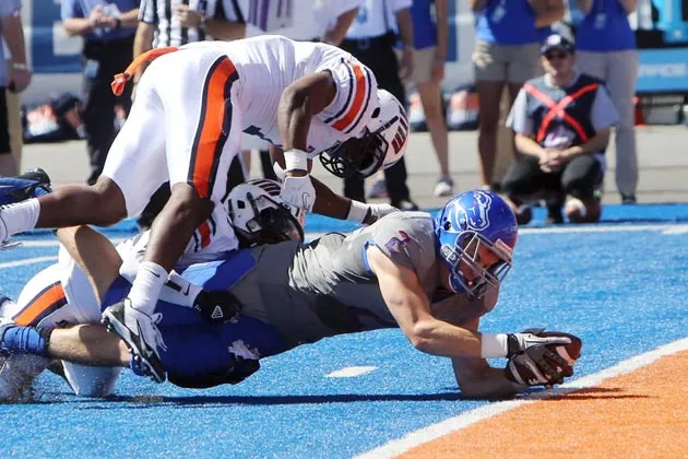 博伊西州立大学在这里对阵田纳西-马丁大学得分,是一支受欢迎的、偶尔排名较高的球队,参加常常被忽视的山地西部会议照片由乔·贾泽夫斯基/爱达荷州报/MCT通过Getty Images提供当全国排名第17的大学橄榄球队弗雷斯诺州立大学在这个星期六晚上走上赛场时,观看比赛的唯一地方是在校园内部人士,一个试图从无法获得完整关注的会议中挖走橄榄球比赛版权的冷门网站ESPN。