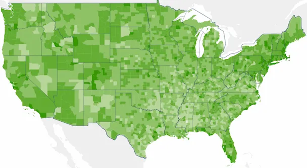 虽然他们在可负担住房方面表现较差(深绿色县的居民中,支付住房费用少于家庭收入30%的人口比例最高):