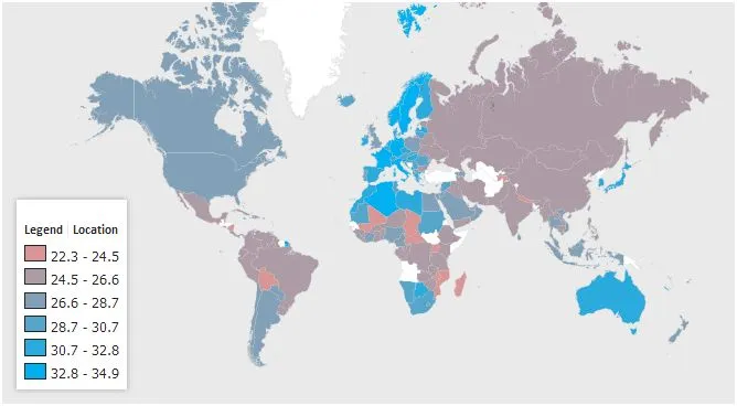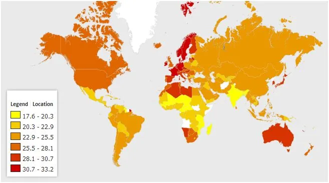 切换到男性:他们在许多相同的国家中结婚的年龄往往较大,例如法国(33.4岁)、德国(33.7岁)和瑞典(34.3岁)。在北非也有早在30岁出头的男性新郎——利比亚、阿尔及利亚、摩洛哥——以及在澳大利亚、日本和韩国。最年轻的新娘来自中非和南非国家,以及塔吉克斯坦、玻利维亚、尼加拉瓜和伯利兹。以下是这些情况的概述: