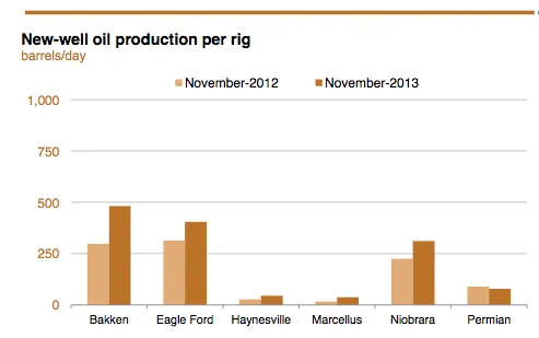 双方都不能是对的——而辩论远未结束。然而,美国能源信息管理局的一份新的钻探生产力报告似乎肯定会惹恼页岩繁荣的否认者。根据报告,不仅整体石油和天然气生产以惊人的速度增长,而且这一增长是由“钻探效率和新井生产力的提高推动的,而不是活跃钻机数量的增加。”