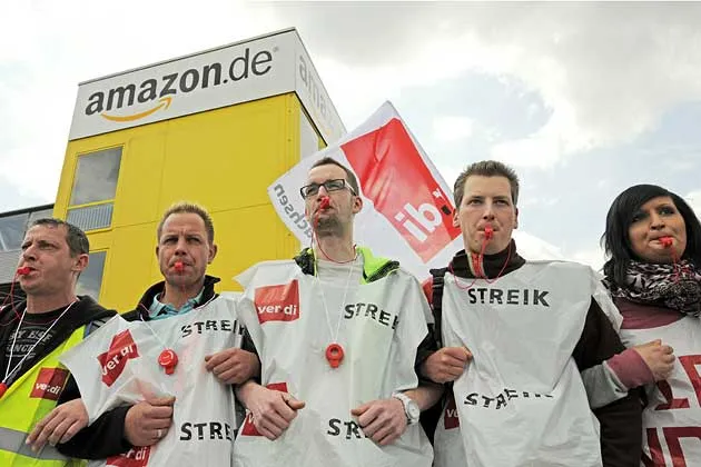 Ver.di 正在要求将亚马逊在德国的九个配送中心的工资与全国零售工人的合同对齐。如果这样做,起始时薪将从目前的 9.30 欧元提高到 9.83 欧元(12.75 美元到 13.50 美元),最高可达 11.70 欧元(16 美元),根据工会的说法。