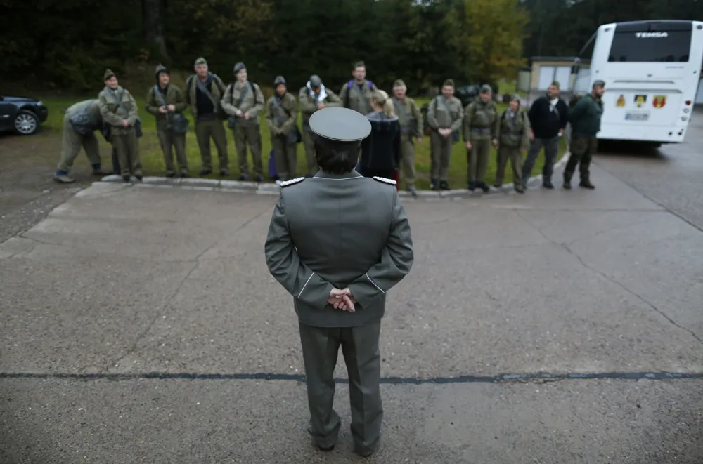 马尔科,穿着NVA军官制服,在“碉堡博物馆”的“现实活动”中检查碉堡,时间为2013年10月12日。路透社/Ina Fassbender