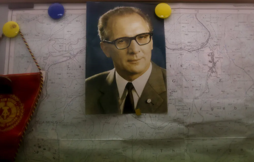 前东德(DDR)领导人埃里希·霍内克的照片在“碉堡博物馆”拍摄于2013年10月12日。路透社/伊娜·法斯本德