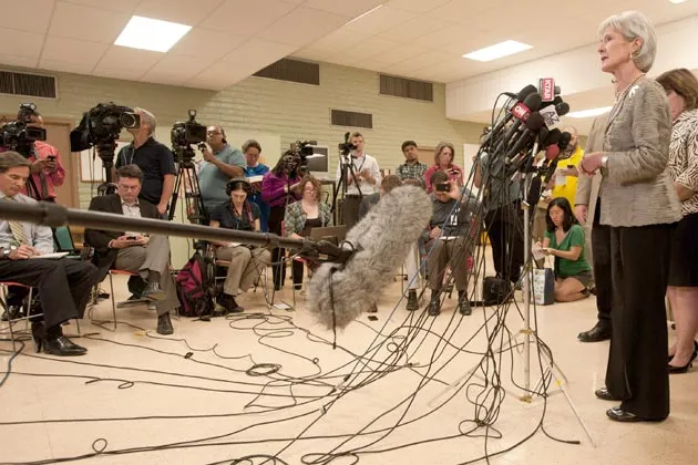 美国卫生与公共服务部部长凯瑟琳·西贝lius在10月24日于凤凰城回答有关《平价医疗法案》的问题摄影:劳拉·塞加尔/盖蒂图片社美国卫生与公共服务部部长凯瑟琳·西贝lius将于周三出席众议院委员会,回答有关 healthcare.gov 的问题,这是联邦健康保险交易网站的启动问题。预计这将是华盛顿本周最受关注的事件,预计共和党人不会对她温和对待,因为他们探寻为何 没有人能够在该网站上购买保险,这是奥巴马医改的一个关键组成部分,原本应该像亚马逊一样易于使用。