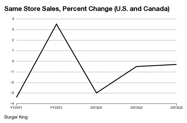 尽管薯条的创新吸引了新顾客,他们也点了其他商品,但在截至九月底的上个季度,似乎仍然太早去评估其影响。汉堡王在美国和加拿大的同店销售下降了0.3%,公司将此归因于“消费者支出疲软和持续的竞争压力。”同店销售全年都在下降。