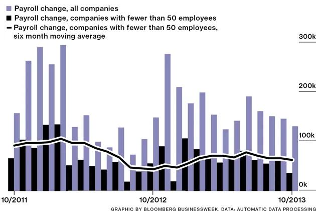 根据今天发布的 ADP国家就业报告,小型公司(员工少于50人)在10月份仅增加了37,000个职位,这是今年最弱的表现,数据来自这家薪资公司。这与上个月增加的68,000个职位相比。