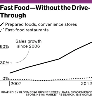 迷你超市策略旨在利用购物习惯的变化:根据市场研究公司IBISWorld的数据显示,从2008年到今年,美国没有加油站的便利店销售额年均增长估计为5.2%,而传统杂货店和超市的销售额下降了0.4%。便利店占美国零售地点的35%,为食品制造商提供了比餐厅更大的销售增长潜力。