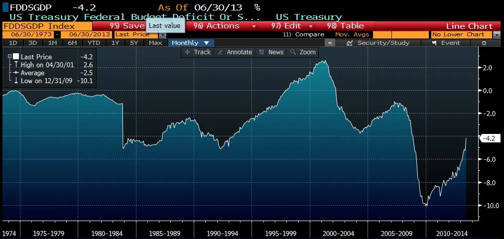联邦预算赤字低于自2008年以来的水平,并且以自很久以来最快的速度缩减。显然,比第二次世界大战结束以来的任何时期都要快。