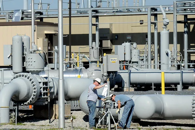 工人在宾夕法尼亚州吉尔福德的Spectra Energy Corp.运营的管道中心进行小修小补摄影:安德鲁·拉塞尔/AP照片在万圣节期间,纽约市发生的所有奇怪事情中,也许最奇怪的事情发生在能源市场。10月31日,曼哈顿的天然气价格比路易斯安那州便宜近40美分。这在八年来是第一次。