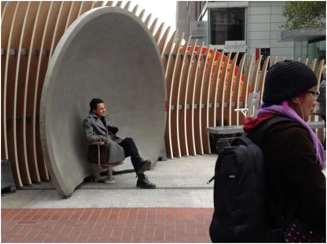 这并不是这个角落唯一奇怪的地方。还有一个看起来像鲸鱼肋骨的围栏,以及一个在电子感应到其占用者手牵手时会播放音乐的长椅。由于一个新的项目将市有空间转变为古怪、意想不到的乐趣区,整个区域已成为工程师和科技人员以及科学好奇者的快闪游乐场。