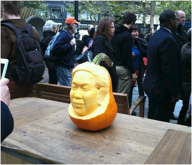 虽然不太相关,但在该区域首次亮相时,有一个南瓜被雕刻成旧金山的样子 市长Ed Lee:
