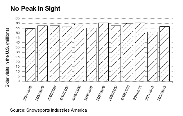 尽管如此,滑雪绝对不是一个增长领域。在过去十年中,参与人数基本持平。