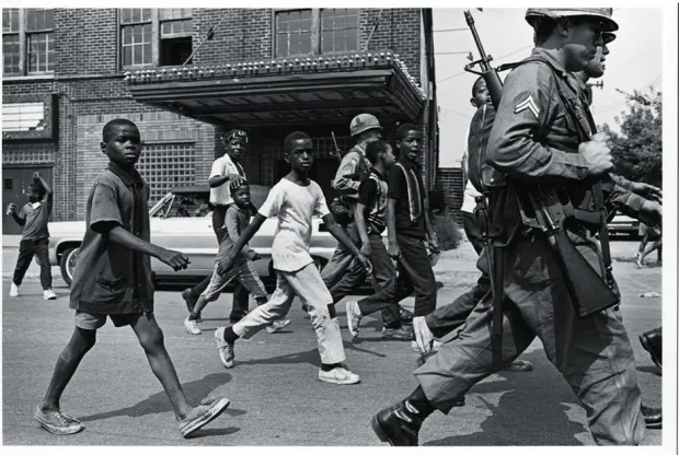 顶部图片:“儿童在1967年底特律骚乱期间跟随军人。”