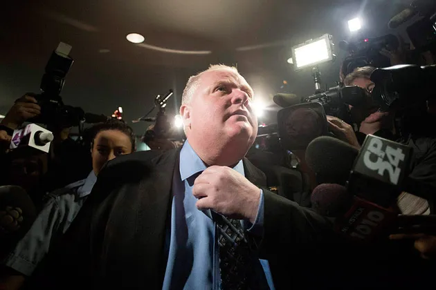 两天前,多伦多饱受争议的市长终于承认,在经过六个月的媒体报道、警方调查和福特自己的否认后,确实吸食过可卡因。当一位震惊的记者问他这是什么时候发生的时,市长回答:“可能是在我醉酒失态的时候。”那是失态,复数。已经在那一周,市长办公室外的走廊变成了每个媒体组织的营地,接待了坐轮椅的铁士、穿香蕉服的歌手和几位福音派基督徒,他们带着圣经希望拯救市长破碎的灵魂。