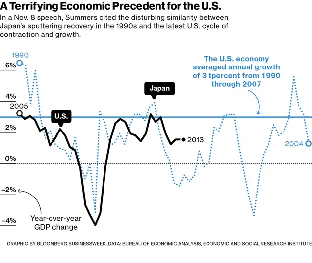 拉里·萨默斯,这位差点成为美联储主席的人,对美国的增长前景感到非常悲观。在一场11月8日的演讲中,他在国际货币基金组织表示,美国可能陷入“世俗停滞”——一种不是商业周期产物的衰退,而是一种或多或少的永久性状态。萨默斯的结论非常悲观。如果他是对的,经济在没有金融泡沫或大规模刺激的情况下无法实现充分就业,而这两者往往以糟糕的方式结束。以债务驱动的房地产泡沫的崩溃导致了2007-09年的危机,一些政策制定者担心美联储的宽松货币政策正在为经济的再次下滑铺路。请注意,道琼斯工业平均指数在11月18日突破了16,000点的关口。