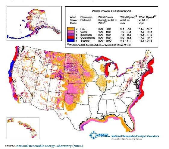 美国一些最佳的风资源位于海上国家可再生能源实验室
