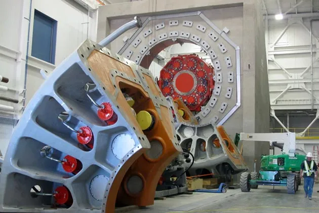 该设施的主要吸引力是建在6英亩仓库内的两个巨型测试装置。每个重达数百吨,高达四层楼,这些装置看起来像是科幻电影的拍摄现场。事实上,现场的建筑工人们已经开始称呼更大的15兆瓦装置为“星际传送门”,这是因为1994年的科幻电影描绘了一种外星技术,可以在时空之间打开虫洞。