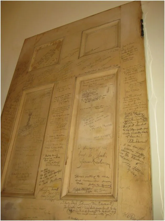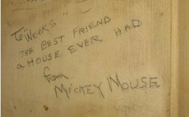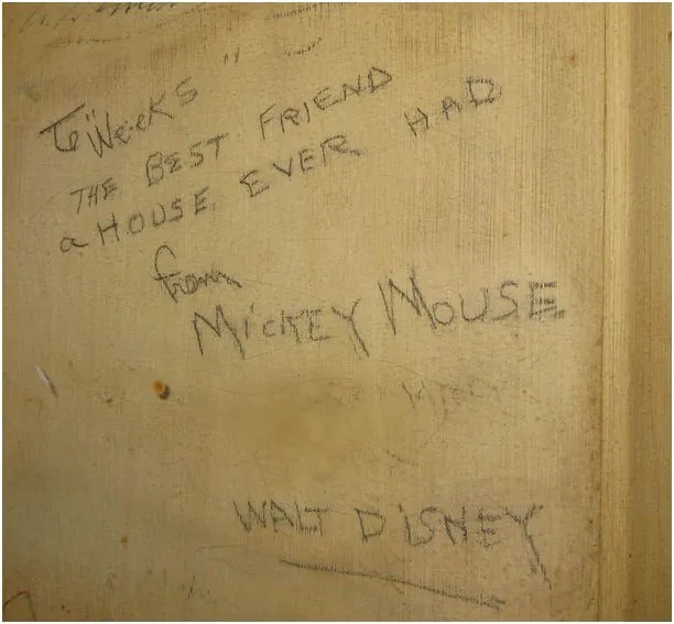 放大后,你会发现这是沃尔特·迪士尼的题词,他是众多著名客人之一,曾造访Shadows及其主人Weeks Hall: