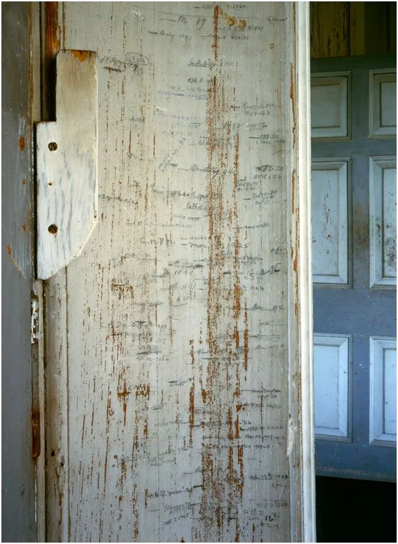 为了以一个不那么阴森的音调结束,这块美国风情位于德雷顿大厅,这是南卡罗来纳州查尔斯顿的一座乔治亚-帕拉第奥式种植园住宅。任何父母无疑会认识到它的用途:这是一个生长图,用于德雷顿家族的长辈测量他们后代的身高。“测量德雷顿孩子成长的传统始于1880年代,至今仍由家族成员延续,”格拉贝尔说:
