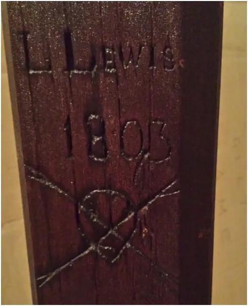 “一名工人在更换一些屋顶和阁楼梁时发现了带有洛伦佐签名的梁,并意识到其历史重要性,因此他用一根新梁替换了它,并将带有洛伦佐签名的梁做成了一个临时讲台,以便展示,”格拉贝尔说。“雕刻上写着‘L. Lewis 1803’,并有一个骷髅和交叉骨的图案。”洛伦佐出生于1803年: