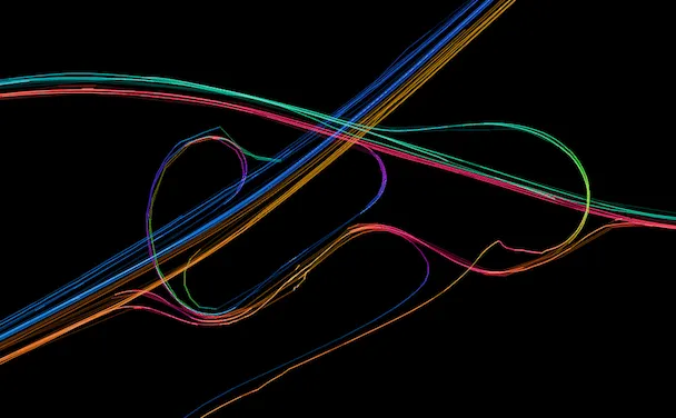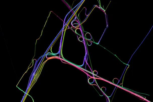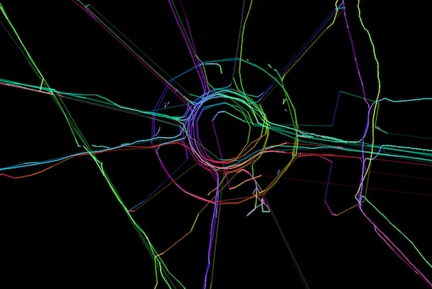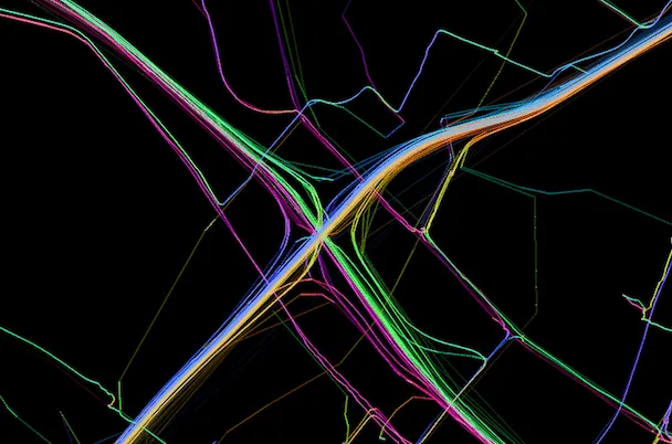 也许你见过 这样的照片,捕捉到最复杂的州际高架桥如同交错的沥青丝带。然而,上面的图像以一种更安静、更美丽的方式呈现了这些相同的信息,将交叉口——在这种情况下,是印第安纳波利斯周围的I-70和I-465环道的交汇处——简化为它们最简单的几何形状。
