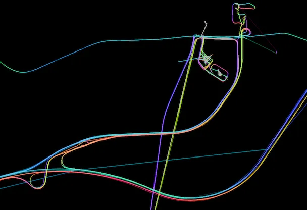 这个方向是通过比较GPS轨迹中每个点与后续点之间的角度来工作的。如果轨迹显示一个人在某个位置,然后下一个点在该位置的正东,那么这两点之间的线就会被涂成红色。