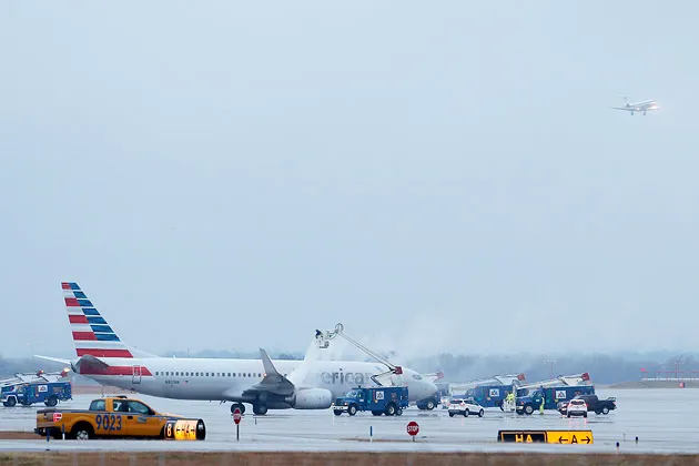 工作人员在11月25日于达拉斯-沃斯堡国际机场为美国航空的737喷洒除冰剂。摄影:布兰登·韦德/AP照片在享用火鸡之前,数百万美国人将会想知道天气是否会影响他们明天的航班。在东部,一场冬季风暴起源于德克萨斯州,威胁到周三沿海地区的强降雨和内陆的降雪。
