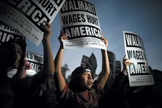 意识到他们不能与客户站在对立面,许多客户的收入低于平均水平,沃尔玛和麦当劳正在尝试改变叙述。两者都表示,他们支付给绝大多数员工的工资高于最低工资。“全国范围内,中产阶级工作岗位正在减少,我们希望成为解决方案的一部分,”沃尔玛的通讯副总裁大卫·托瓦尔在11月21日给记者发邮件说。同一天,在芝加哥,麦当劳首席执行官唐·汤普森在彭博社的《2014年展望》会议上指出,60%的公司特许经营商是从小时工开始的。