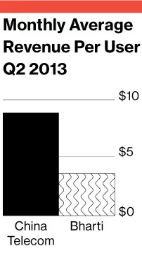 如果他是对的,RCom可能会帮助解决全球增长最快的智能手机市场中电信运营商面临的持续头痛问题。由于该国的移动用户习惯于为语音通话支付不到一美分的费用,印度的运营商每位客户的收入远低于国际同行。每位用户平均每月仅为1.60美元,而美国公司的这一数字为69美元,印度运营商已将数据费用削减了多达90%,押注于更便宜的费用将有助于推动移动游戏和社交网络的增长。在截至9月的三个月中,RCom的每用户平均收入增长了26%,达到了120卢比(1.92美元)。为了进一步提高平均水平,该公司在11月5日的声明中表示,已断开了1000万“无利可图的低端用户”。