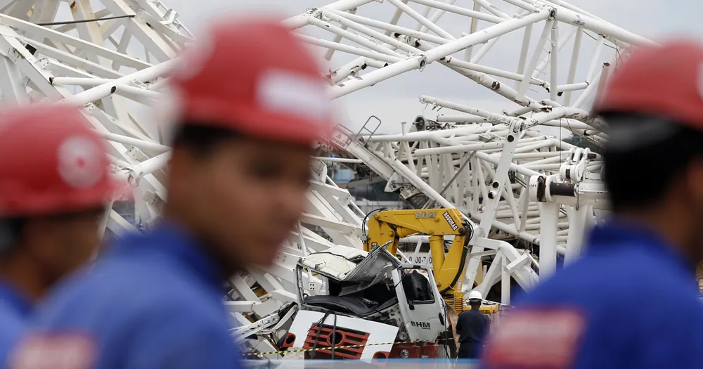 美联社建筑工人昨天返回了圣保罗的伊塔奎拉奥,上周三一台起重机倒塌,造成两人死亡。