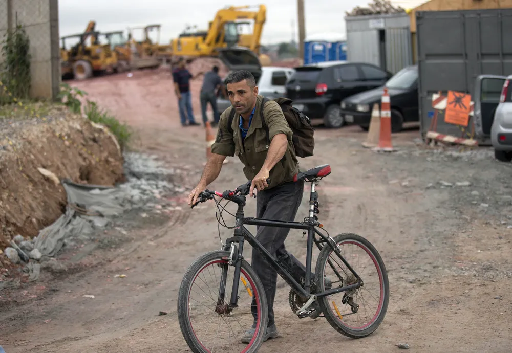 钢铁工人阿梅里科·巴尔博萨在2013年12月2日,星期一,五天前发生事故导致两名工人遇难后,返回将在圣保罗,巴西举办世界杯开幕赛的科林蒂安竞技场。美联社照片/安德烈·佩纳